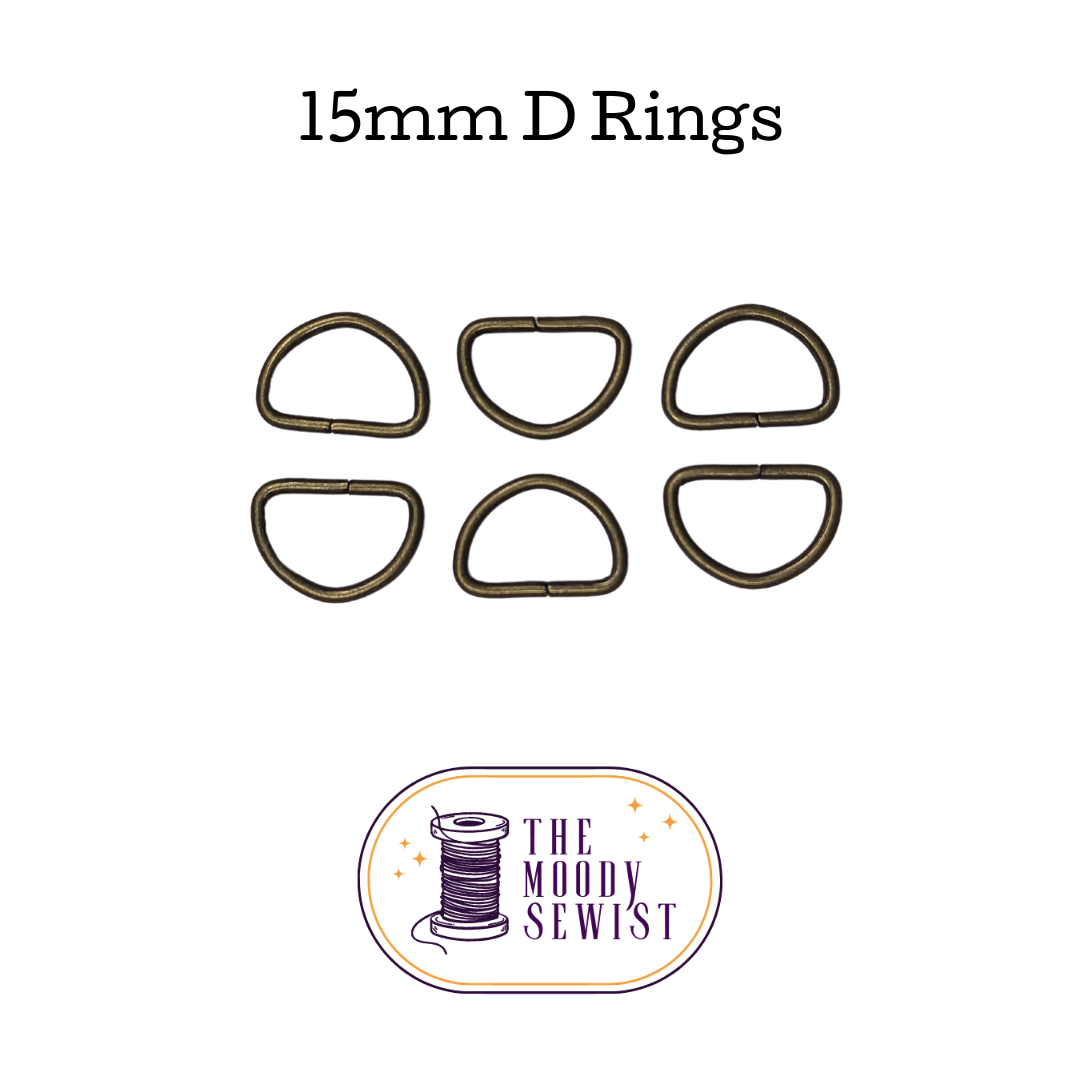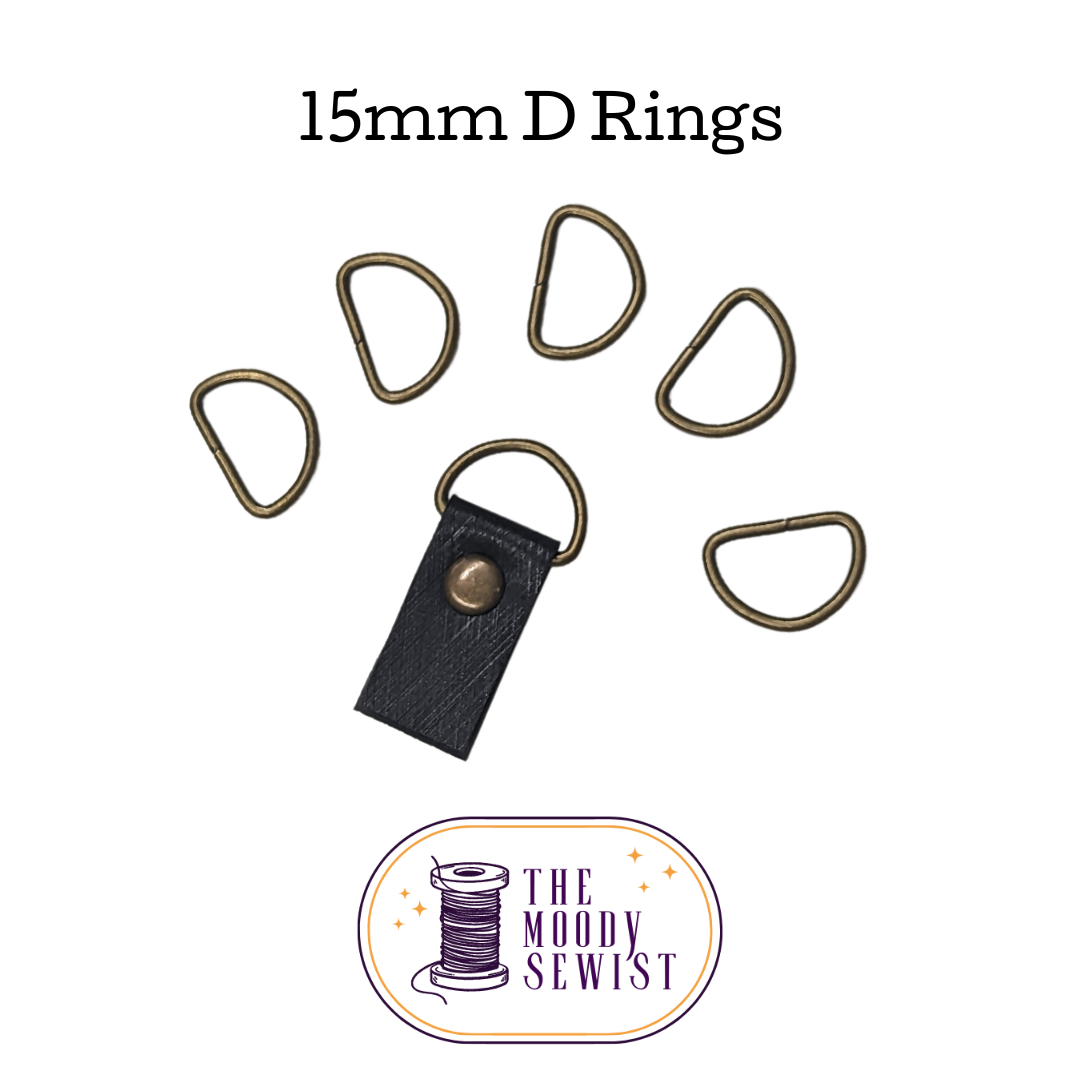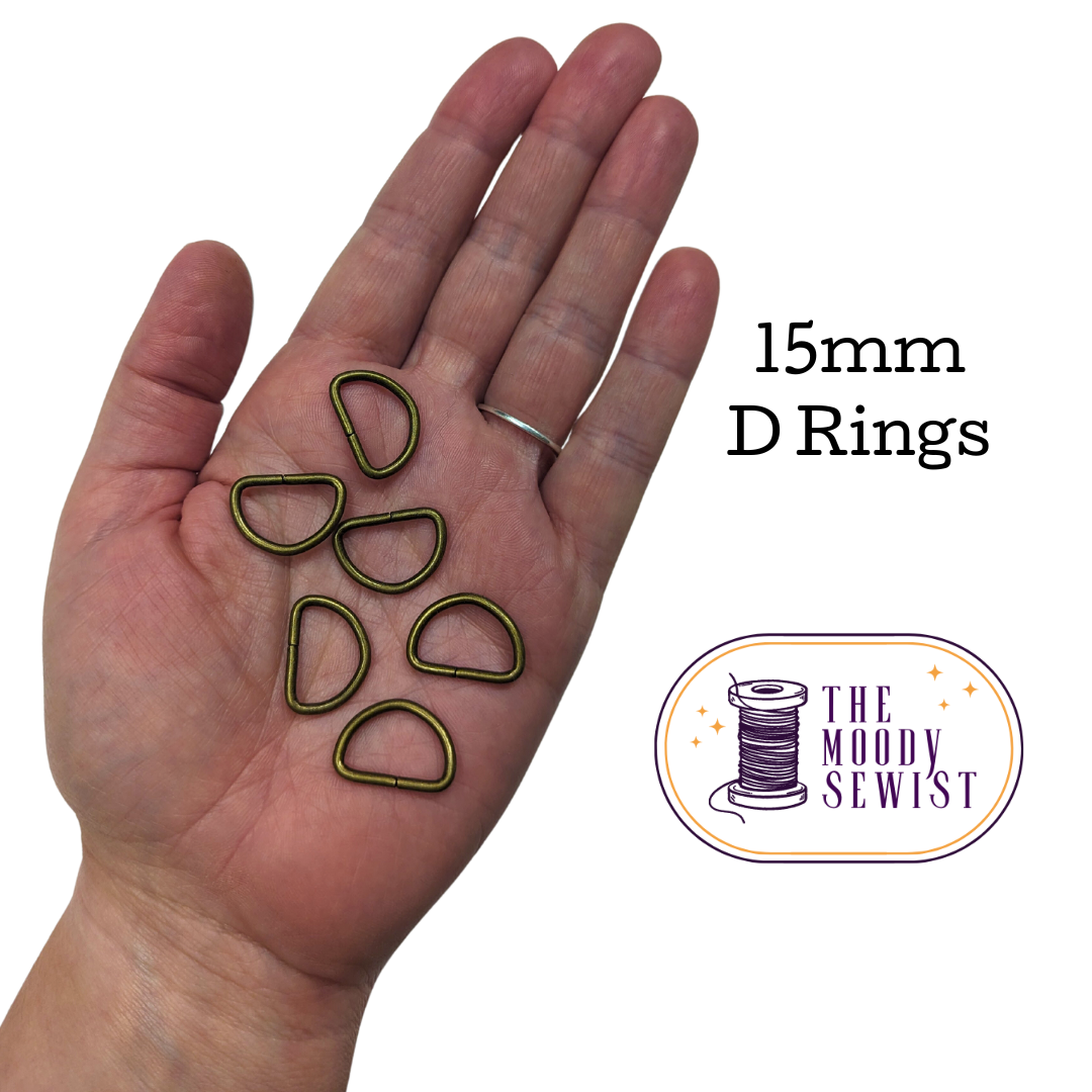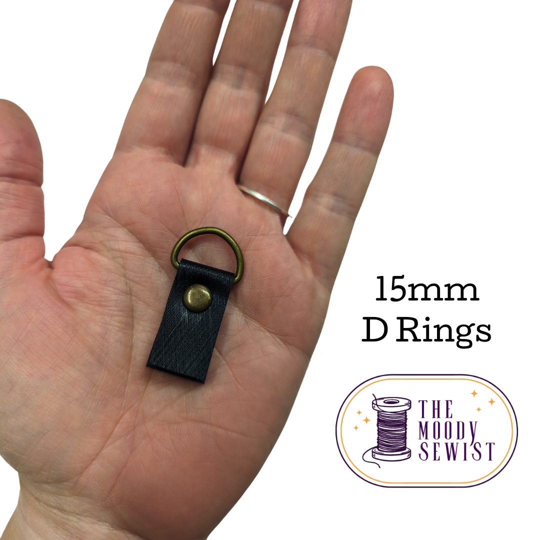 These 15mm D rings are slightly larger that 1/2" so you can use them with half inch webbing/straps, or even something slightly wider. They're thin yet sturdy for their size, so you can confidently use them on your wallets, pouches, or even the Moody Market Apron. If you're looking for D-Rings meant for heavy lifting check out our 1" D-Rings