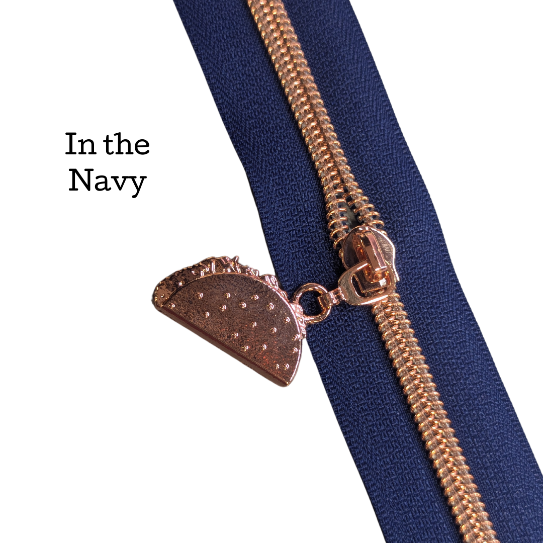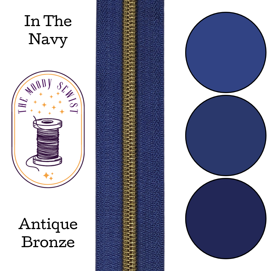 #5 zipper tape with Antique Bronze or Rose Gold nylon coils.