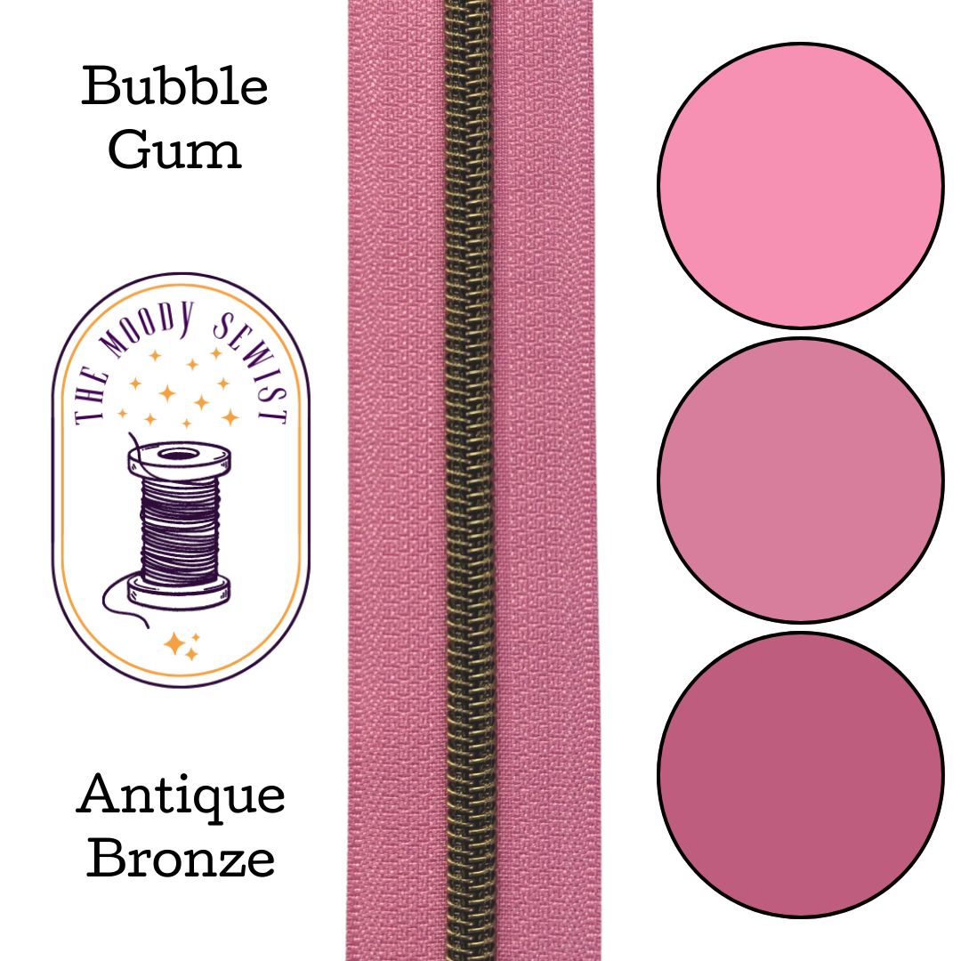 #5 zipper tape with Antique Bronze or Rose Gold nylon coils.
