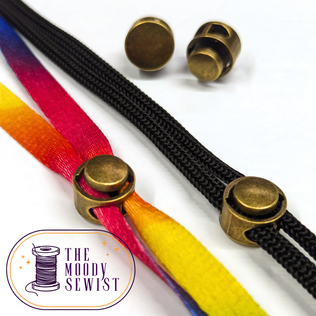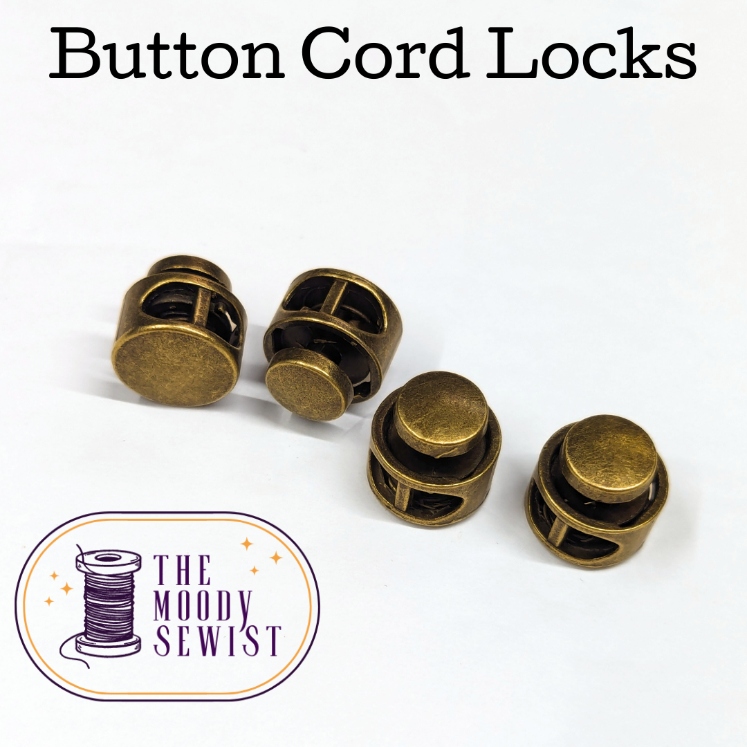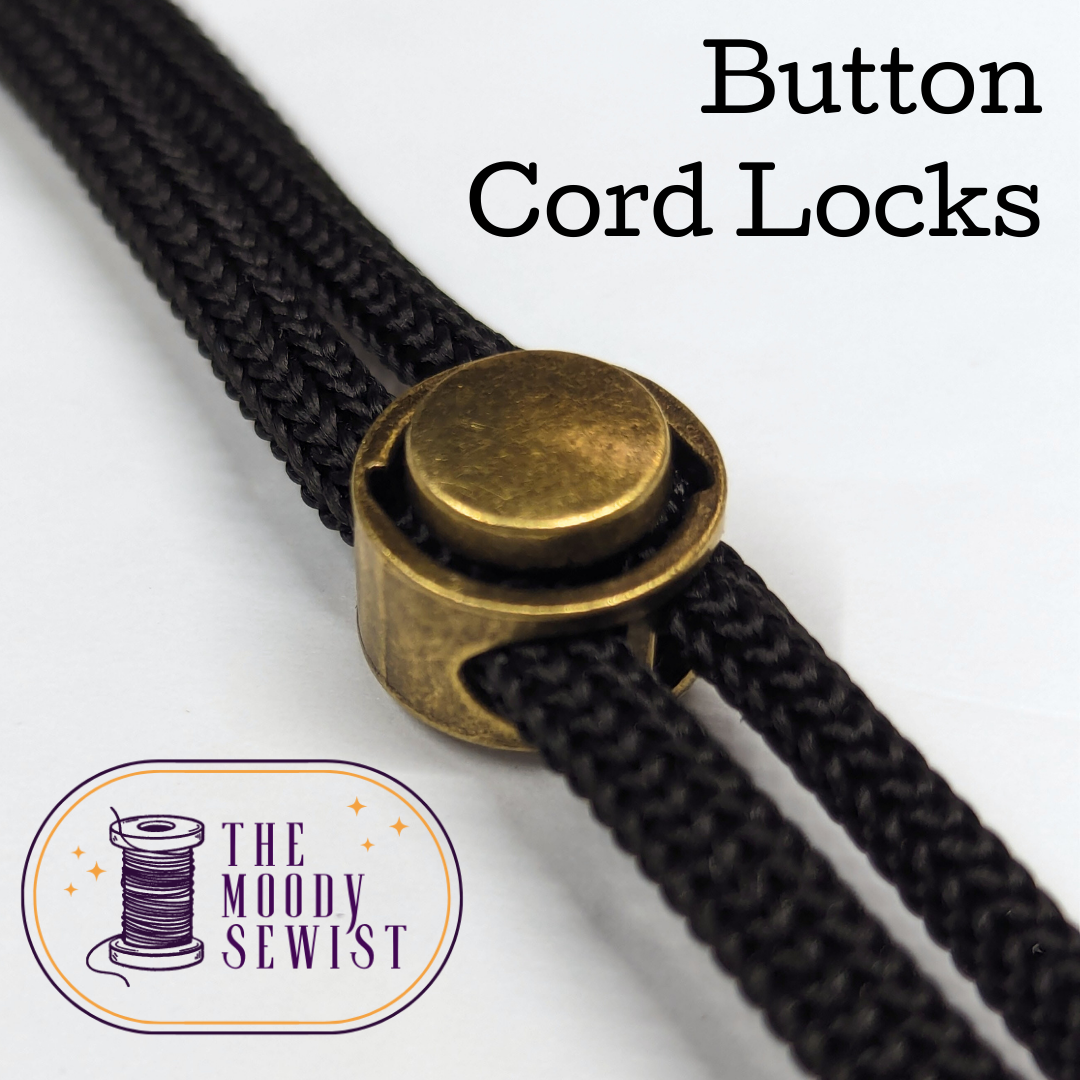 These cord locks are cute as a button! Measuring approx .5" in diameter, they feature two holes that snugly fit 4mm [or thinner] cording.
