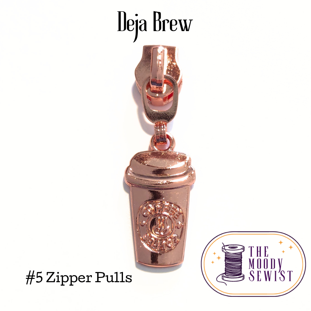 Wake up and smell the coffee with our Deja Brew zipper pulls! Shaped like a to-go coffee cup, these pulls are a must-have for caffeine connoisseurs and java junkies. Whether you're fueling up for the day ahead or just enjoying a leisurely stroll, this cup of joe pull will always brew up good vibes. Available in our signature Antique Bronze and elegant Rose Gold finishes.