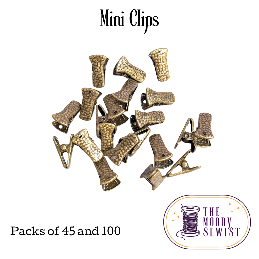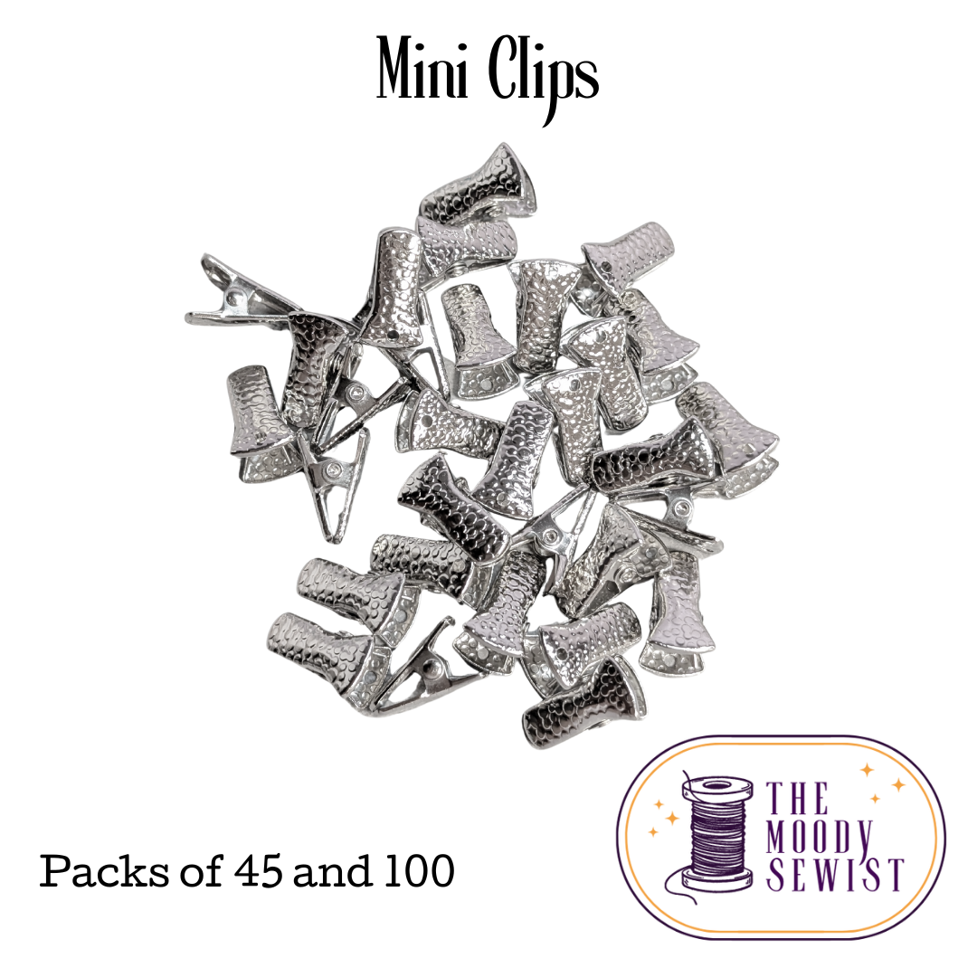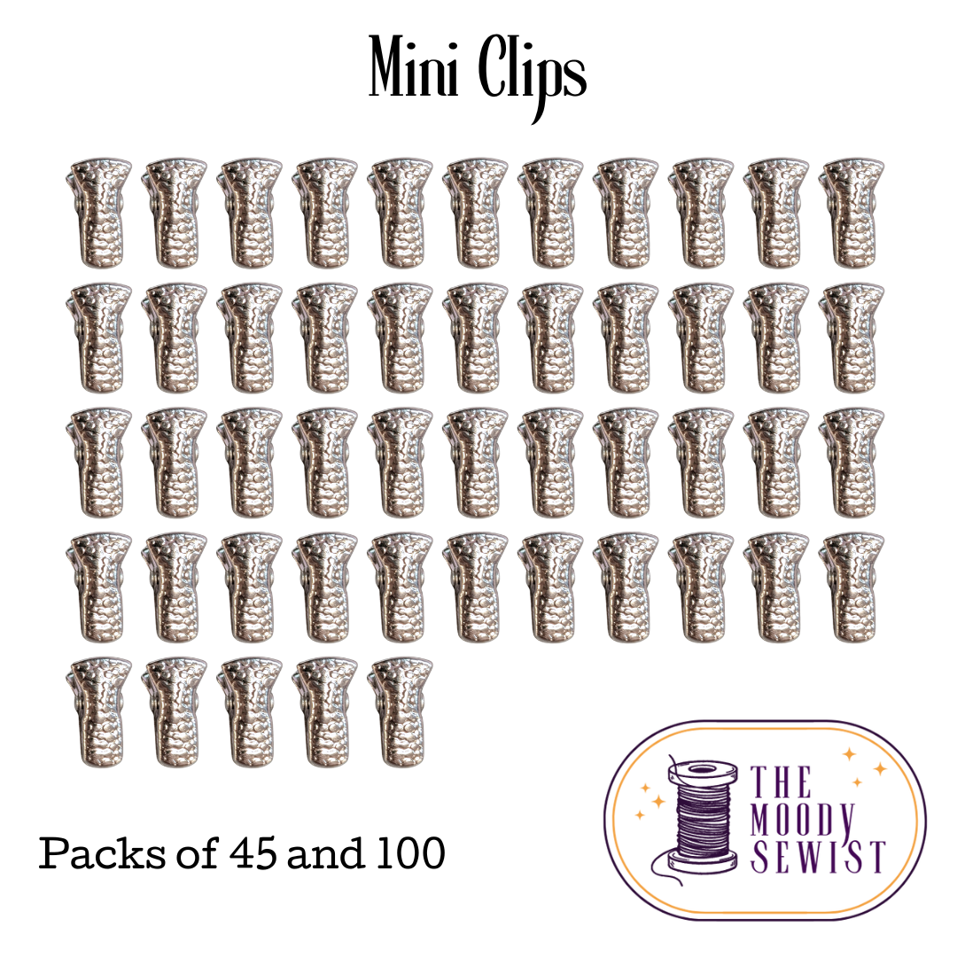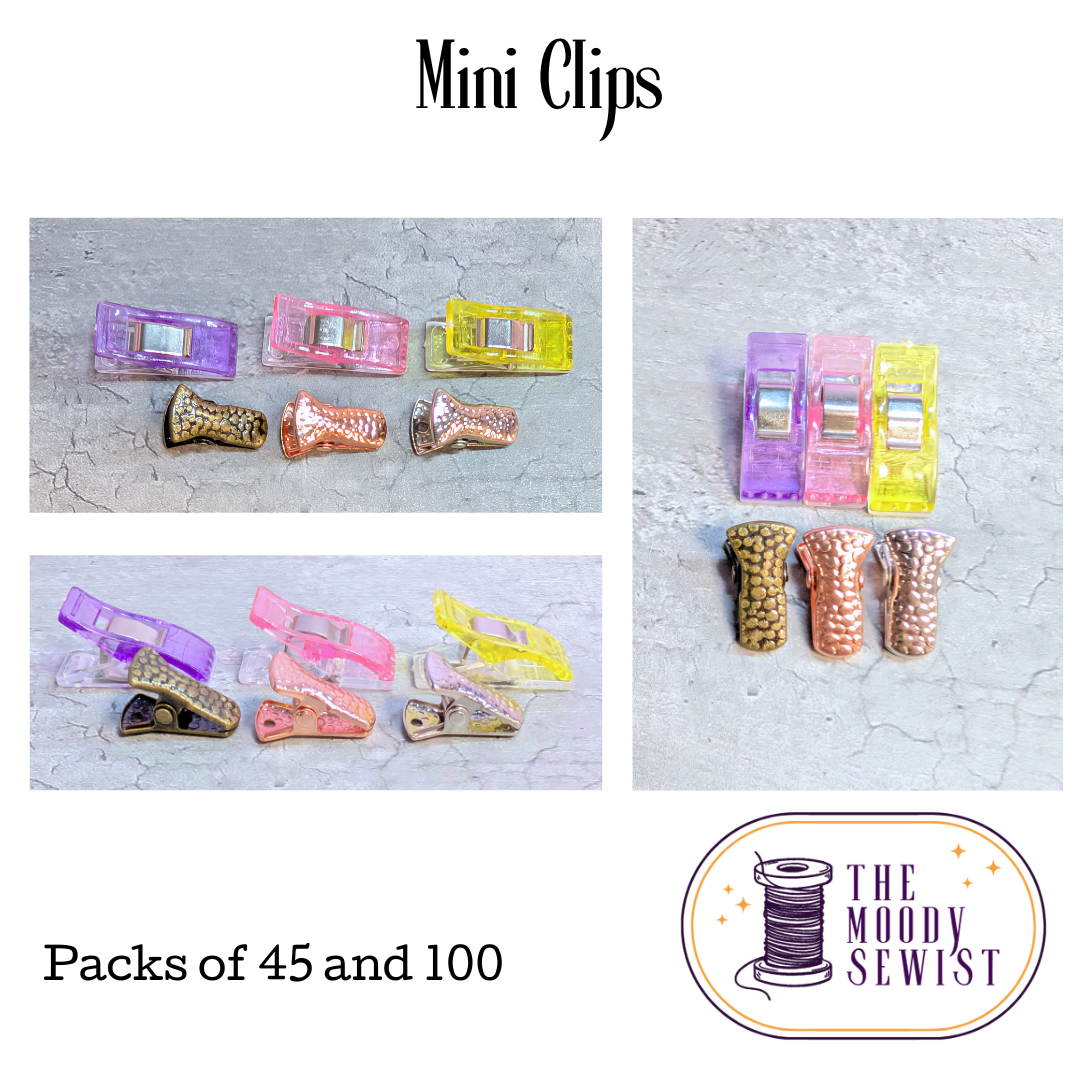 Mini Clips are your new sewing BFF. Small but mighty, they’re made with metal and a real spring for extra holding power, and they take up less space along your seam allowance, making them perfect for tight curves and precision work. Compared to plastic clips there's only one clear winner [and it comes in three finishes!] Available in Antique Bronze, Rose, Gold, or Silver finish.