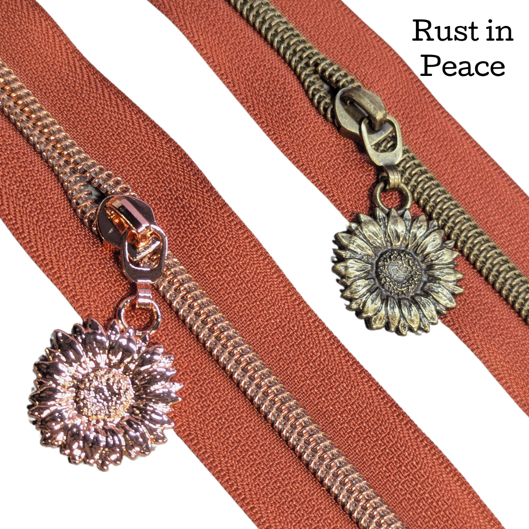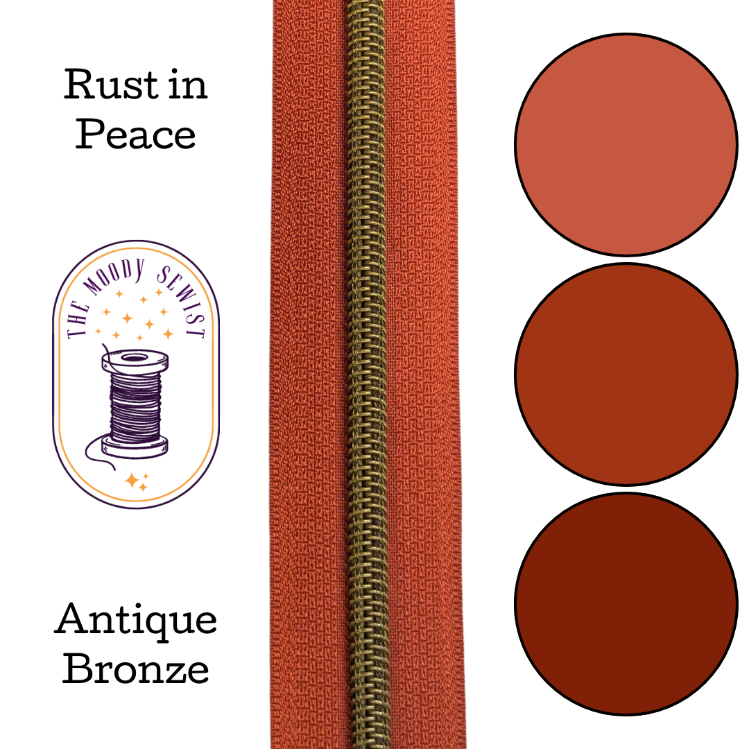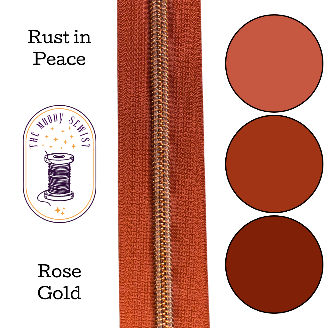 #5 zipper tape with Antique Bronze or Rose Gold nylon coils.